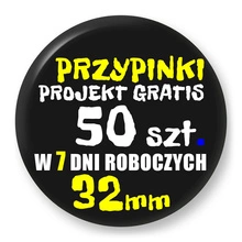 Przypinki z logo 32mm (50 szt.) - Buttony na zamówienie z projektem gratis w 7 dni