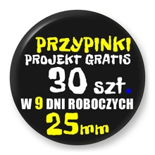 Przypinki z logo 25mm (30 szt.) - Buttony na zamówienie z projektem gratis w 6 dni