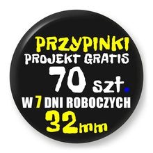 Przypinki z logo 32mm (70 szt.) - Buttony na zamówienie z projektem gratis w 7 dni