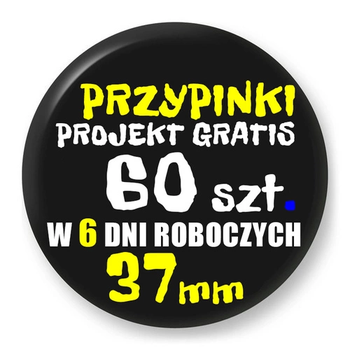 Przypinki z logo 37mm (60 szt.) - Buttony na zamówienie z projektem gratis w 6 dni