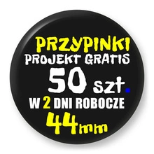 Przypinki z logo 44mm (50 szt.) - Buttony na zamówienie z projektem gratis w 2 dni