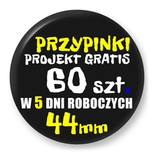 Przypinki z logo 44mm (60 szt.) - Buttony na zamówienie z projektem gratis w 5 dni