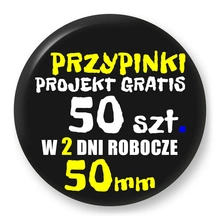 Przypinki z logo 50mm (50 szt.) - Buttony na zamówienie z projektem gratis w 2 dni