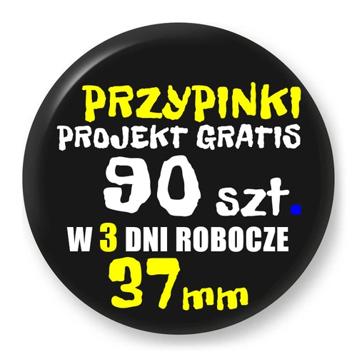 Przypinki z logo 37mm (90 szt.) - Buttony na zamówienie z projektem gratis w 3 dni