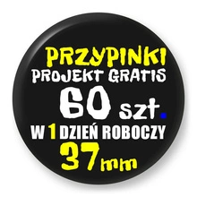 Przypinki z logo 37mm (60 szt.) - Buttony na zamówienie z projektem gratis w 1 dzień