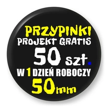 Przypinki z logo 50mm (50 szt.) - Buttony na zamówienie z projektem gratis w 1 dzień