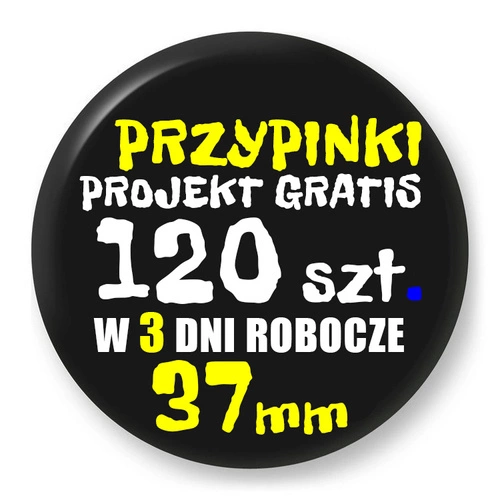 Przypinki z logo 37mm (120 szt.) - Buttony na zamówienie z projektem gratis w 3 dni