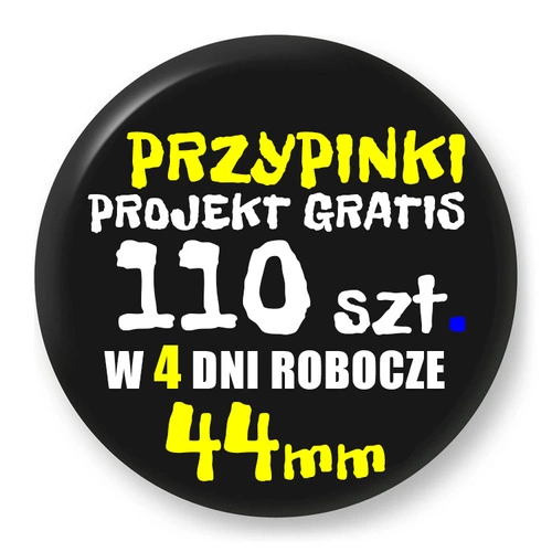 Przypinki z logo 44mm (110 szt.) - Buttony na zamówienie z projektem gratis w 3 dni