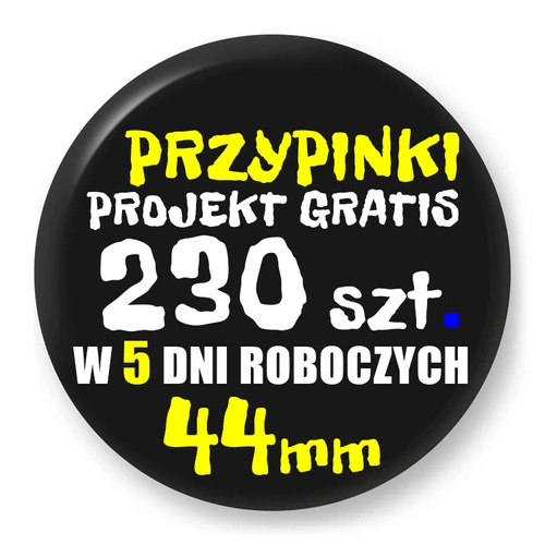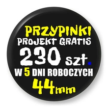 Przypinki z logo 44mm (230 szt.) - Buttony na zamówienie z projektem gratis w 5 dni