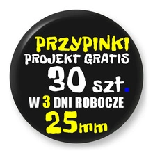 Przypinki z logo 25mm (30 szt.) - Buttony na zamówienie z projektem gratis w 2 dni