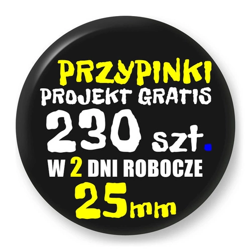 Przypinki z logo 25mm (230 szt.) - Buttony na zamówienie z projektem gratis w 2 dni