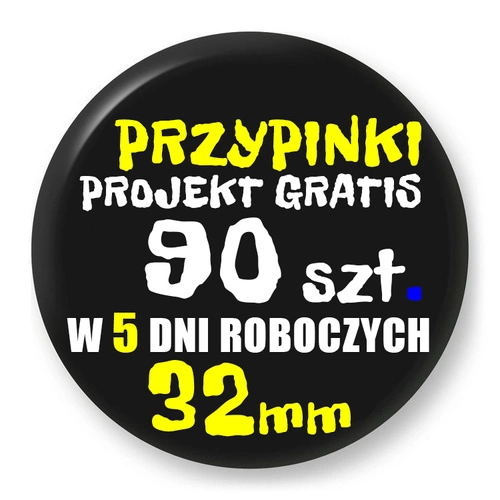 Przypinki z logo 32mm (90 szt.) - Buttony na zamówienie z projektem gratis w 2 dni