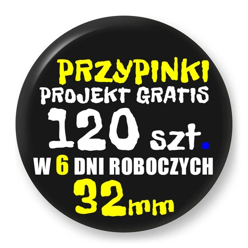Przypinki z logo 32mm (120 szt.) - Buttony na zamówienie z projektem gratis w 6 dni