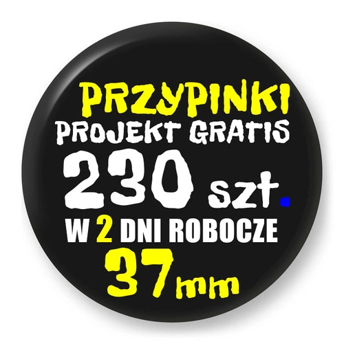 Przypinki z logo 37mm (230 szt.) - Buttony na zamówienie z projektem gratis w 2 dni