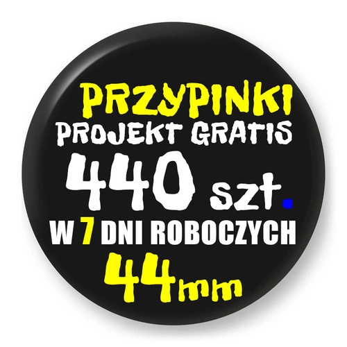Przypinki z logo 44mm (440 szt.) - Buttony na zamówienie z projektem gratis w 7 dni