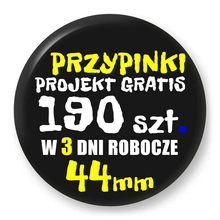 Przypinki z logo 44mm (190 szt.) - Buttony na zamówienie z projektem gratis w 3 dni